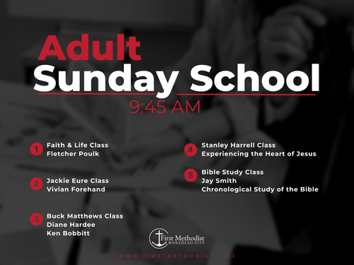The First Methodist Women's Agape Circle meets on the 1st Monday of the Month at 12:30pm in The Stanley Harrell Classroom.